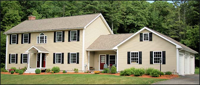 A Colonial style custom modular floor plan with 3 spacious bedrooms and 2150 square feet of space.