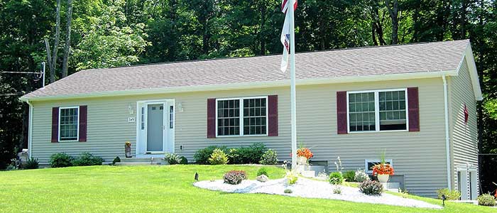 A Ranch style custom modular floor plan with 3 spacious bedrooms and 1650 square feet of space.